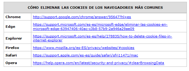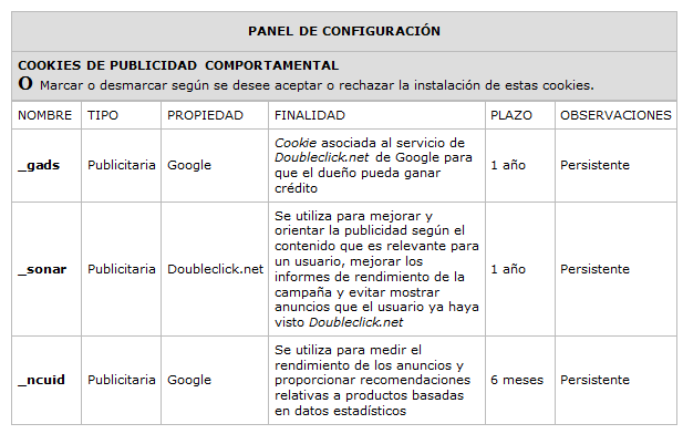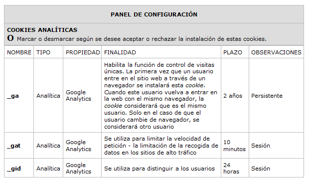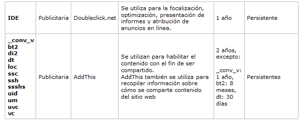 COOKIES UTILIZADAS EN ESTE SITIO WEB